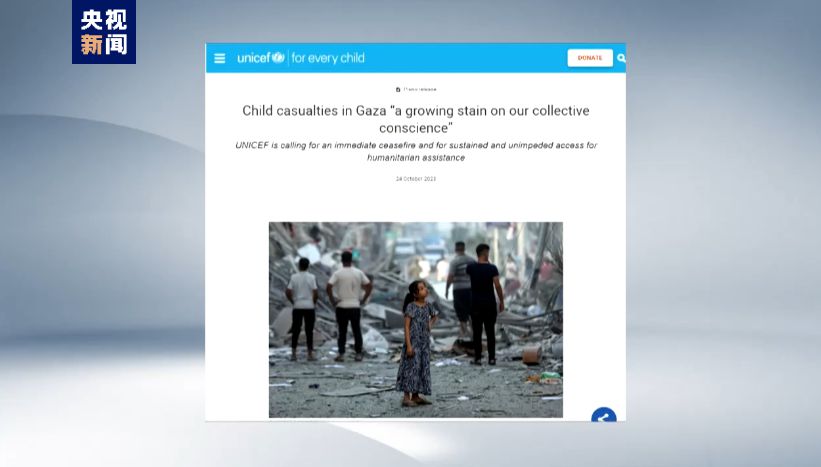 聯(lián)合國兒童基金會呼吁沖突各方盡快停火、允許人道主義救援物資進(jìn)入加沙。