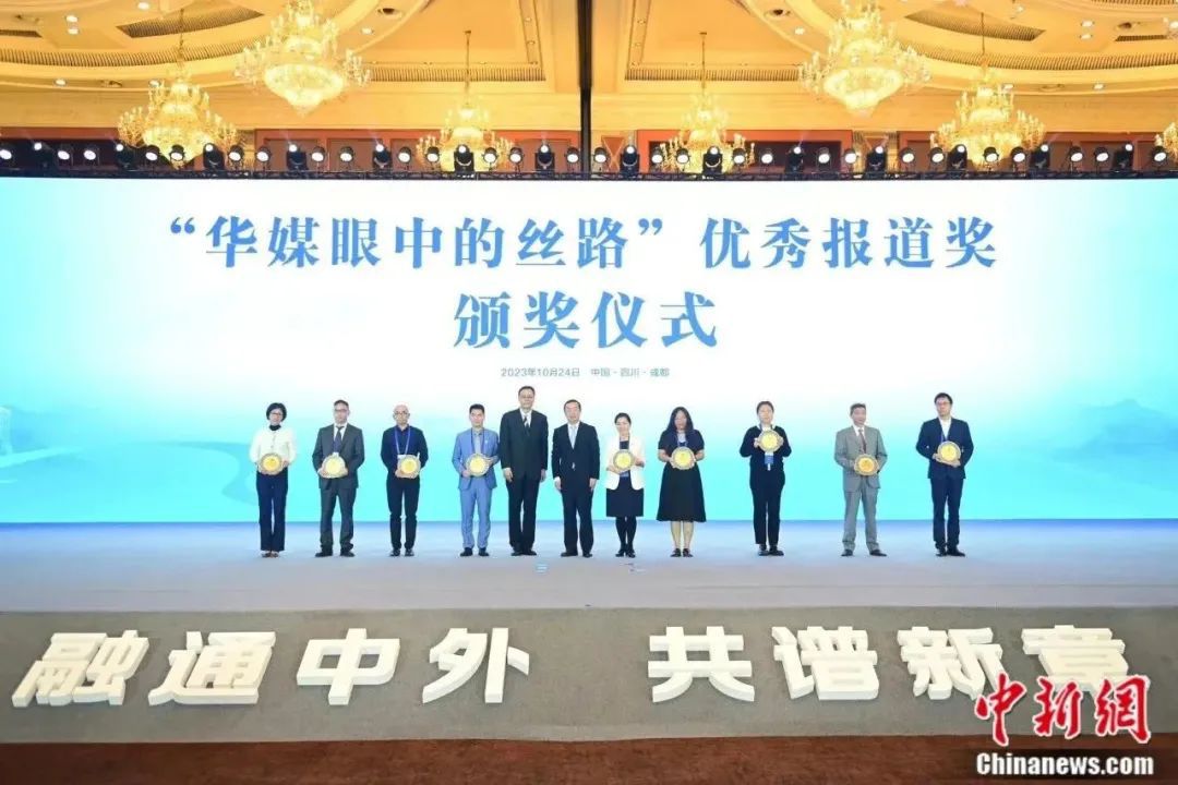 今年是共建“一帶一路”倡議提出十周年,華文媒體充分報道了“一帶一路”倡議,涌現了一大批新聞佳作。中國新聞社與世界華文媒體合作聯盟組織開展“華媒眼中的絲路”報道及作品征集活動,評選出20件優秀作品?!叭A媒眼中的絲路”優秀報道獎頒獎在閉幕式上舉行。