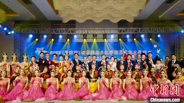 11月3日,2023世界閩南文化節在菲律賓馬尼拉舉行開幕式。圖為與會嘉賓與演員合影。中國駐菲使館供圖