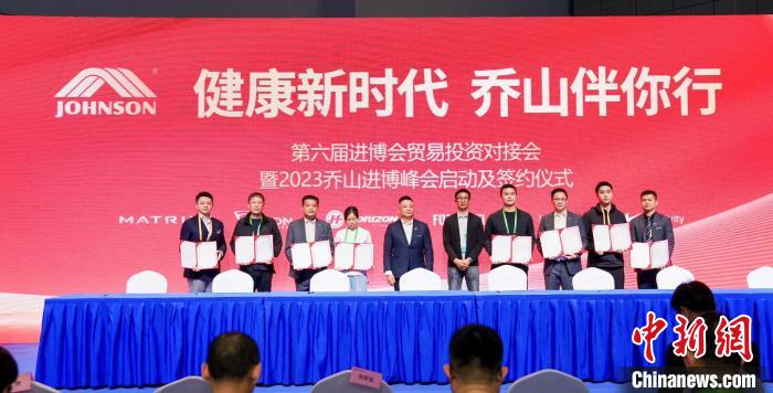 11月7日,臺資企業喬山健康科技(上海)有限公司在第六屆進博會上簽約。(喬山集團供圖)