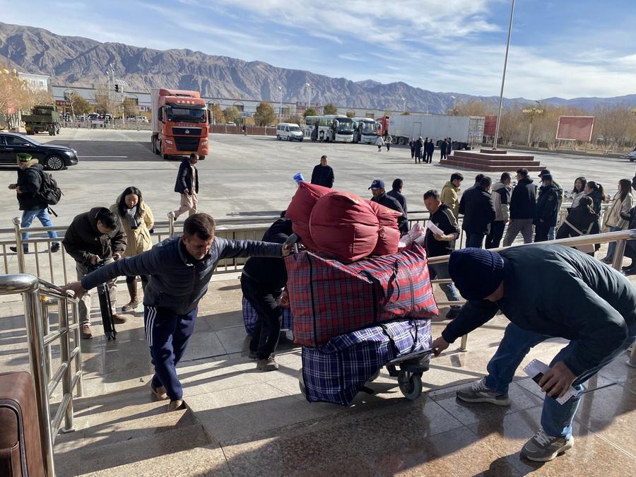 11月6日,國際道路旅客(旅游)班車裝滿了旅客的行李。(中國網記者 王冉 攝)