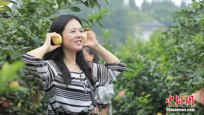 圖片圖為市民在采摘檸檬。潼南區委宣傳部供圖