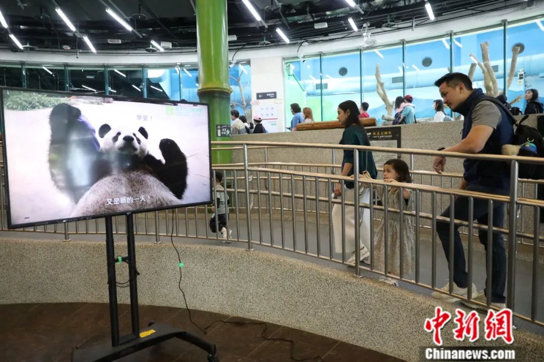 11月19日,民眾來到臺北動物園緬懷“團團”。圖為現場播放“團團”一家回顧影片。中新社記者 陳小愿 攝
