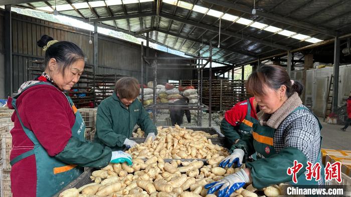下堡坪鄉一家天麻加工廠的工人們在處理天麻。 謝陽 攝