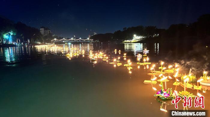 中新網曼谷11月28日電(李映民 趙婧楠)“月圓之夜,河水上漲,青年男女載歌載舞漂水燈,漂水燈,幸福將陪伴你我……”伴隨著悠揚的古典樂曲,泰國古城清邁的濱河邊,民眾穿著傳統服裝,手里捧著精心制作的水燈,放到河面上,隨著水流緩緩漂去……