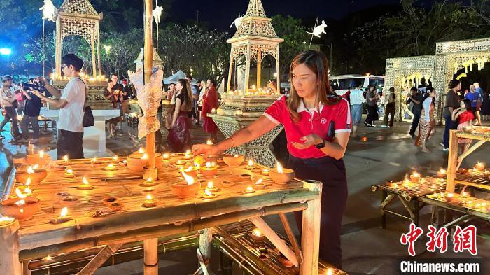 在清邁市中心塔佩門,夜幕剛剛降臨,五顏六色的燈一齊亮起。展示的巨型花車有神話故事人物、有吉祥動物大象,還有身著盛裝的演員表演傳統舞蹈。意大利游客方達全家來到清邁。他興奮地說,第一次過水燈節,親手制作水燈,和當地人一起載歌載舞,這種文化體驗十分美妙。(完)