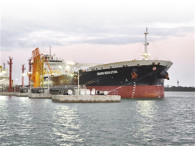 肯尼亞蒙巴薩港新建KOT油碼頭是一座具有國際領先水平的現代化油氣裝卸碼頭,由中國交通建設集團有限公司承建。該碼頭能夠同時實現原油、重油、汽油、柴油、煤油和液化石油氣的進出口轉運功能,投入使用后大幅提升了蒙巴薩港油氣中轉能力,為肯尼亞經濟發展增添新動力。圖為停靠在該碼頭的一艘油輪正在進行卸油作業。