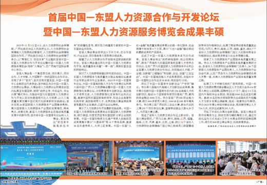 2023年11月3日至4日,由人力資源和社會保障部、廣西壯族自治區人民政府主辦,人力資源和社會保障部人力資源流動管理司、人力資源和社會保障部國際合作司、廣西壯族自治區人力資源和社會保障廳承辦,以“聚智匯力 同創共享”為主題的首屆中國—東盟人力資源合作與開發論壇暨中國—東盟人力資源服務博覽會(簡稱“人博會”),在廣西南寧國際會展中心舉辦。