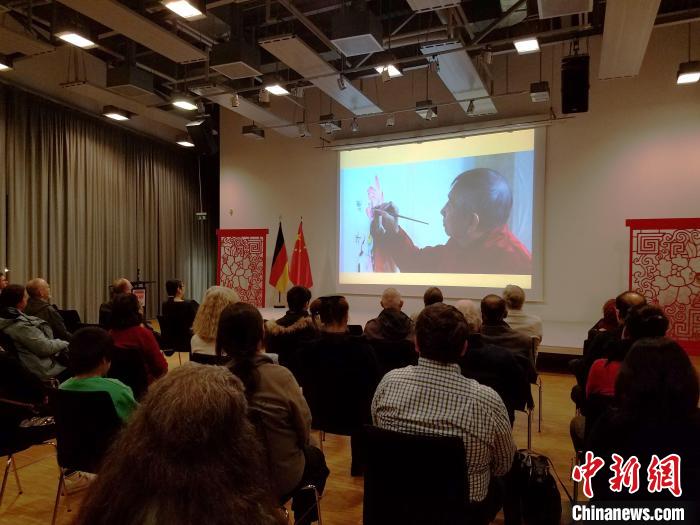 來賓觀賞年畫。 (柏林中國文化中心供圖)