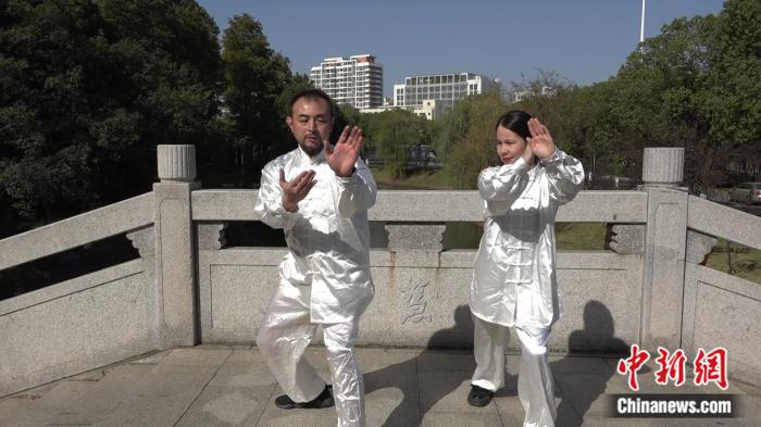 美莎和常州大學體育學院碩士生導師 ,國家武術教練員一級裁判員許曉陽學習太極。葛勇 攝