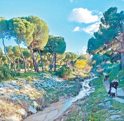 每到冬季,位于西班牙首都馬德里西南近郊的“奇幻小道”森林公園(見圖,本報記者許海林攝),就成了很多民眾出游的勝地。漫步在這條長約1.5公里的森林步道上,兩旁裝飾著極具童趣與創意的小火車、雪橇和小木屋等模型,宛如置身童話世界。這些物件多是就地取材,由木樁制成,讓孩子們更能體會到自然的樂趣。