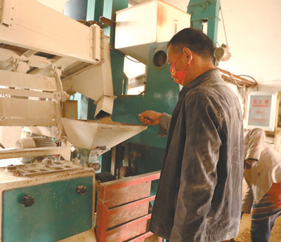 7月25日,在莫桑比克馬普托省博阿內地區,技術員在中莫農業技術示范中心加工農作物。