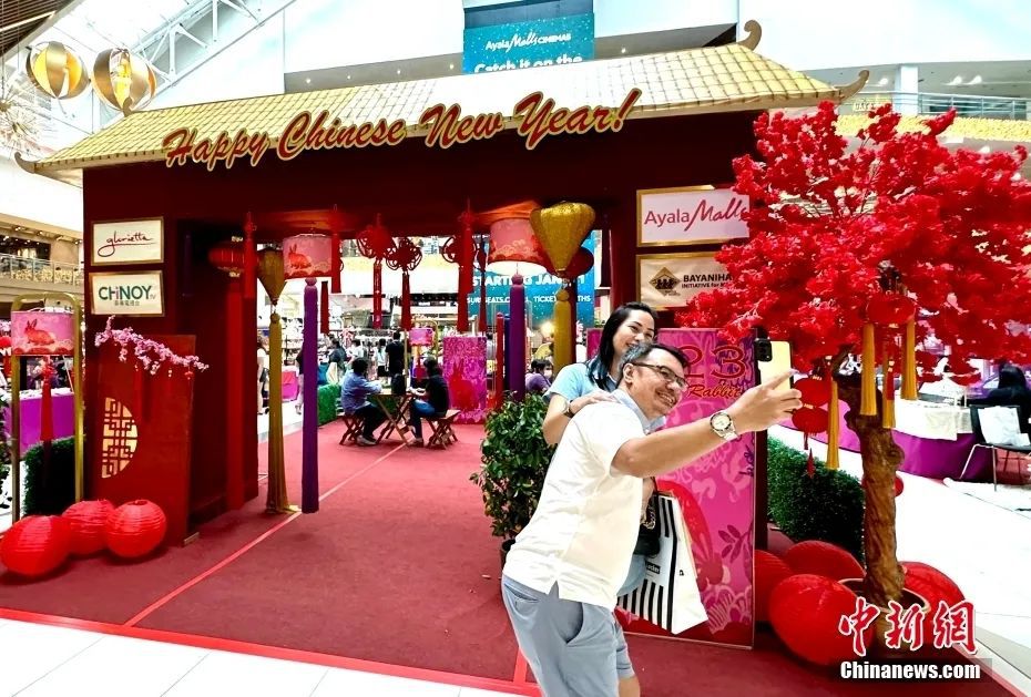 資料圖:當地時間1月21日,農歷除夕,菲律賓大馬尼拉地區馬卡蒂市一商場內,市民在“新春集市”前拍照。近日,該商場搭建了“新春集市”“十二生肖展示區”等,吸引不少市民前來參觀、購物。中新社記者 張興龍 攝