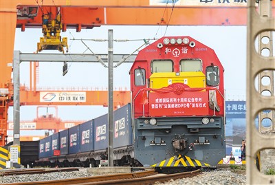 “開行量持續(xù)增加、運(yùn)輸產(chǎn)品更加多元、線路不斷豐富優(yōu)化……從中歐班列開行的變化中,可以明顯看出共建‘一帶一路’倡議提出十年來的蓬勃發(fā)展。”成都國際鐵路港經(jīng)開區(qū)管委會(huì)主任雷庭介紹。