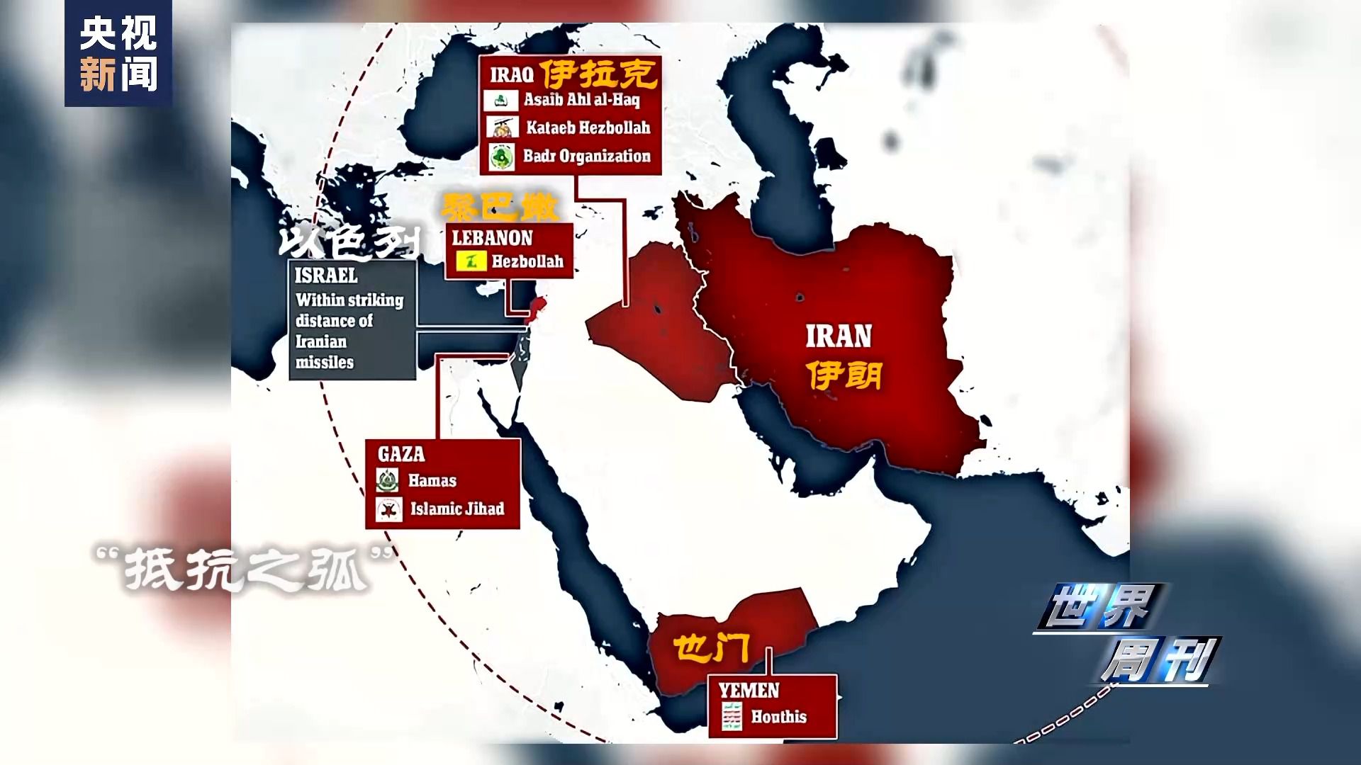 在《衛報》看來,以伊朗為核心、以也門胡塞武裝、巴勒斯坦哈馬斯以及黎巴嫩真主黨等軍事力量建立起的中東什葉派“抵抗之弧”所積聚的反以情結或將集中爆發。