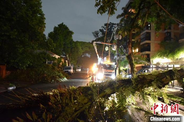 三輛電力公司救援車輛停在康賽桑新區一根電線桿下,架起強光燈,搶修變電箱和電纜。一位維修人員告訴中新社記者,他們已持續工作20多個小時了,“還需要再奮戰一夜”。