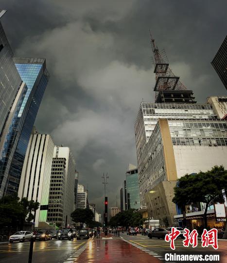 當地時間1月10日,巴西圣保羅保利斯塔大街,暴雨將至。中新社記者 林春茵 攝