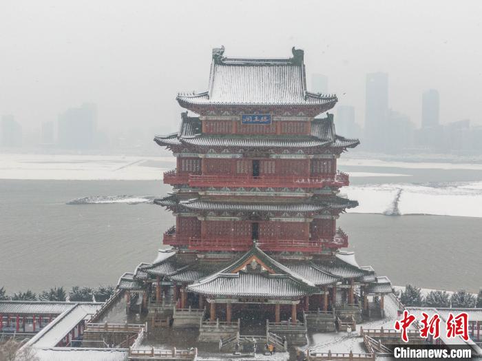 1月22日,位于贛江之畔的江南名樓滕王閣在風雪中更顯古韻。中新社記者 劉力鑫 攝