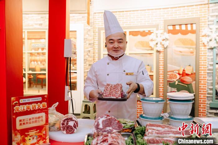 商戶現(xiàn)場推介特色牛肉食品。黑龍江省商務廳供圖