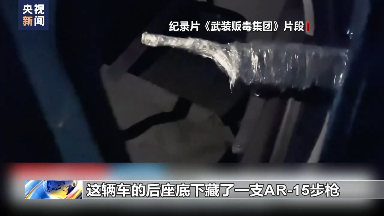 紀(jì)錄片《武裝販毒集團(tuán)》片段:我剛從汽車油箱里取出這支用塑料布包著的9毫米口徑手槍,還在往下淌汽油呢。這輛車的后座底下藏了一支AR-15步槍。