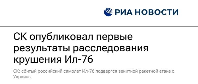 俄羅斯偵查委員會(huì)在聲明中表示,正在對(duì)機(jī)身碎片等物體進(jìn)行專業(yè)鑒定,同時(shí)詢問事件目擊者并繼續(xù)進(jìn)行現(xiàn)場(chǎng)調(diào)查。根據(jù)初步調(diào)查結(jié)果,可以確定伊爾-76運(yùn)輸機(jī)遭到了來自烏克蘭境內(nèi)的防空導(dǎo)彈襲擊。