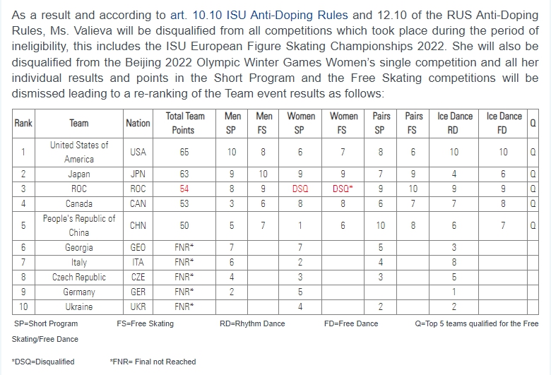 當地時間30日,國際滑聯對北京冬奧會花樣滑冰團體成績進行了重新計算,瓦利耶娃所獲得的成績積分被取消,俄羅斯奧委會代表團在花樣滑冰團體項目中的金牌變為銅牌。