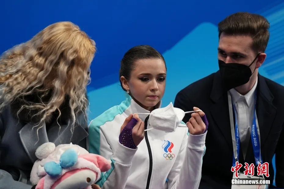 瓦利耶娃(中)在北京冬奧會比賽結束后等待分數 資料圖 中新社記者 崔楠 攝