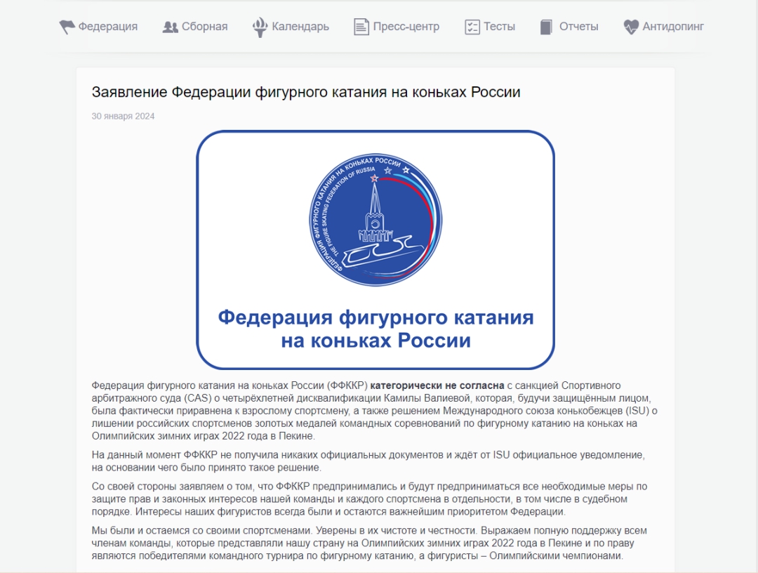 俄羅斯花樣滑冰聯合會強調,將采取一切必要措施,包括在法庭上,保護團隊和運動員的權利和合法利益,“維護我們滑冰運動員的利益始終是聯合會的首要任務”。
