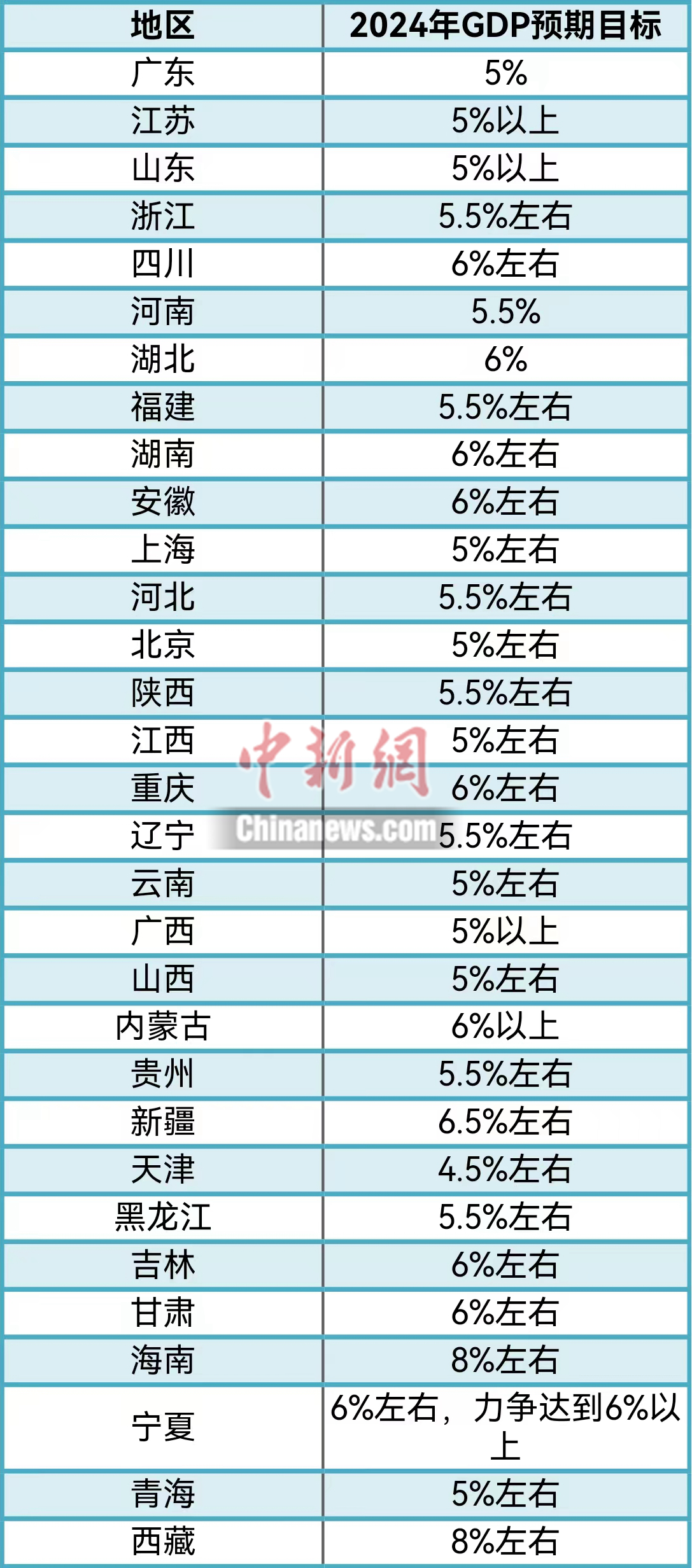 從各個(gè)省份敲定的新年GDP目標(biāo)來看,絕大多數(shù)省份不低于5%,其中,海南、西藏均將2024年增速目標(biāo)設(shè)為8%左右,為全國最高。