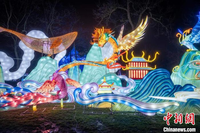 中新網上海2月1日電 (記者 李佳佳)記者1日獲悉,法國當地時間1月31日17時30分,隨著中國文化和旅游部2024年“歡樂春節”吉祥物——“吉祥龍”燈組在法國豫園燈會現場被點亮,來自中國的60架燈組和2000余盞花燈霎時綻放,取材于中國上古神話典籍《山海經》中的祥龍瑞獸們瞬間大放光彩、活靈活現,共同慶賀中法建交60周年暨中法文旅年活動啟幕。
