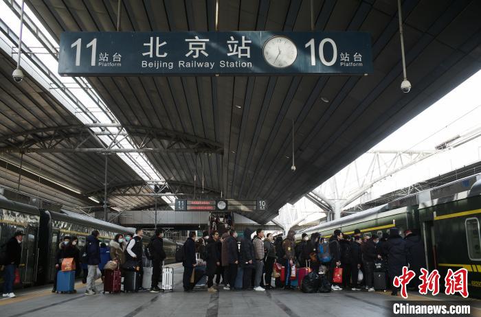 在鐵路北京站,旅客有序乘坐1461次列車前往自己目的地。中新網記者 殷立勤 攝