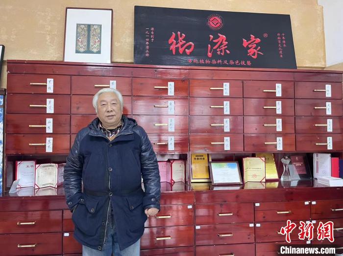 1月15日,湖北省級非物質文化遺產項目傳統植物染料染色技藝代表性傳承人黃榮華接受采訪。武一力 攝
