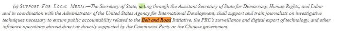 不僅如此,在法案的第136條,美國還專門制定了針對“一帶一路”倡議的抹黑策略,主要就是培訓一大批反華記者。