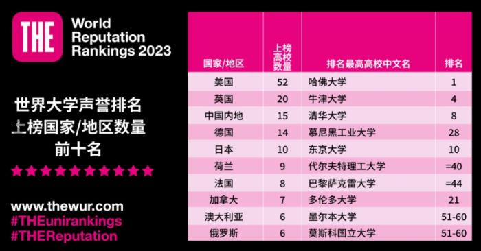 據介紹,泰晤士高等教育世界大學聲譽排名結果,是通過全球最大規模之一的邀請制學術問卷調查評選而出,根據那些發表過論文的資深學者(對大學卓越性最了解的人)的評判,提供了全球最強大的200所大學品牌的最終名單。