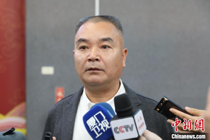 泉州晉江紅十字會高級顧問李朝暉在金門水頭碼頭接受中新社等媒體采訪。中新社記者 楊程晨 攝