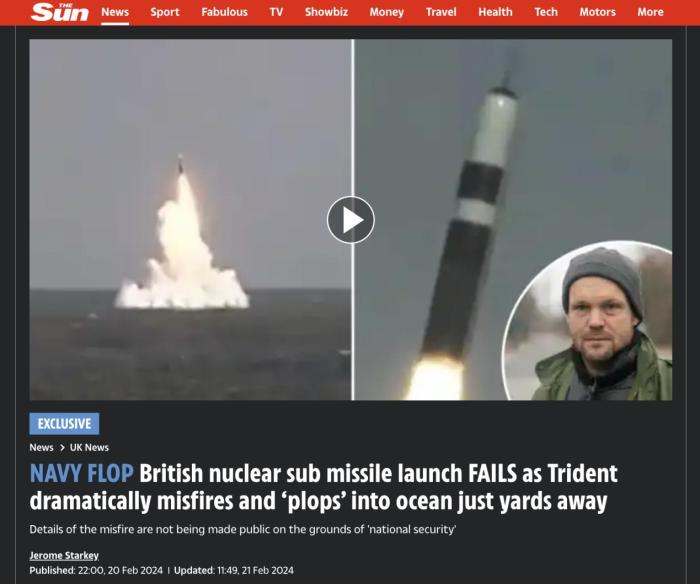 該部在發(fā)給《太陽報(bào)》的一份聲明中表示:“‘先鋒’號(hào)及其船員已被證明完全有能力操作英國的海上威懾力量。此次試射再次證實(shí)了英國核威懾力量的有效性,我們對(duì)此擁有絕對(duì)信心。測(cè)試過程中出現(xiàn)了異常情況。出于國家安全的考慮,我們無法提供有關(guān)此問題的進(jìn)一步信息,但我們相信該異常是針對(duì)特定事件的,因此對(duì)更廣泛的‘三叉戟’導(dǎo)彈系統(tǒng)和庫存的可靠性沒有影響。”