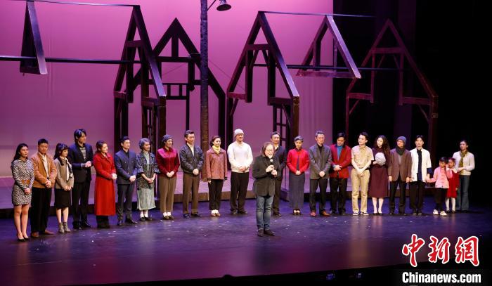 《寶島一村》專屬版第100場演出謝幕前,賴聲川攜演員向臺下觀眾鞠躬致意。(受訪者供圖)