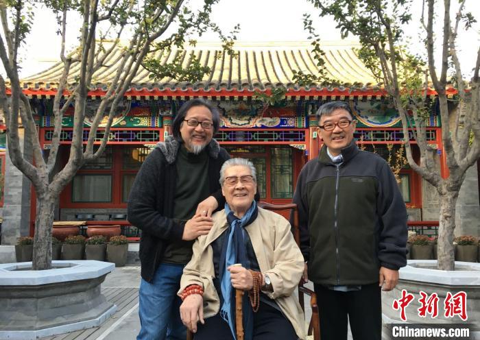 2022年6月8日,賴聲川(左一)在微博中發圖懷念曾一起合作《冬之旅》一劇的藝術家藍天野(中間)。(受訪者供圖)