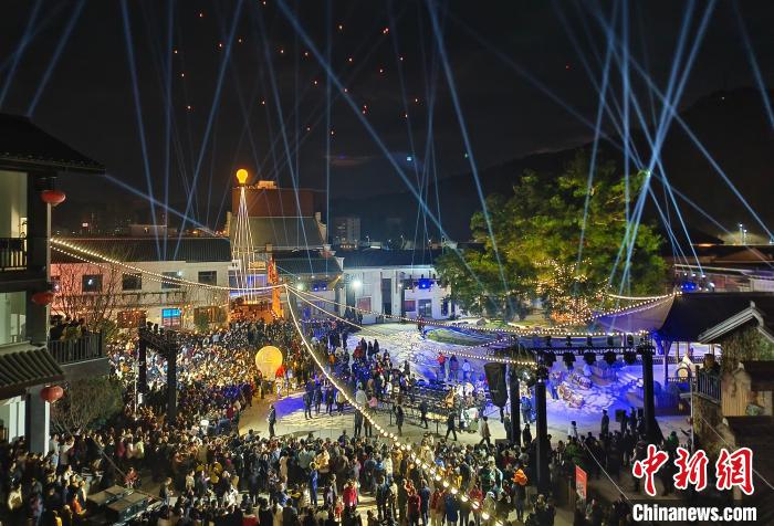 賴聲川歷時多年在家鄉江西會昌打造的會昌戲劇小鎮開幕,燈光秀現場人氣爆棚。(受訪者供圖)