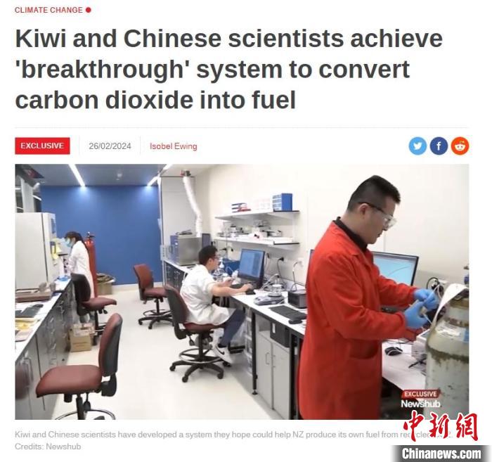 新西蘭和中國科學家正合作開發一種將二氧化碳轉化為有用物質的系統。圖片來源于新西蘭Newshub網站截圖。