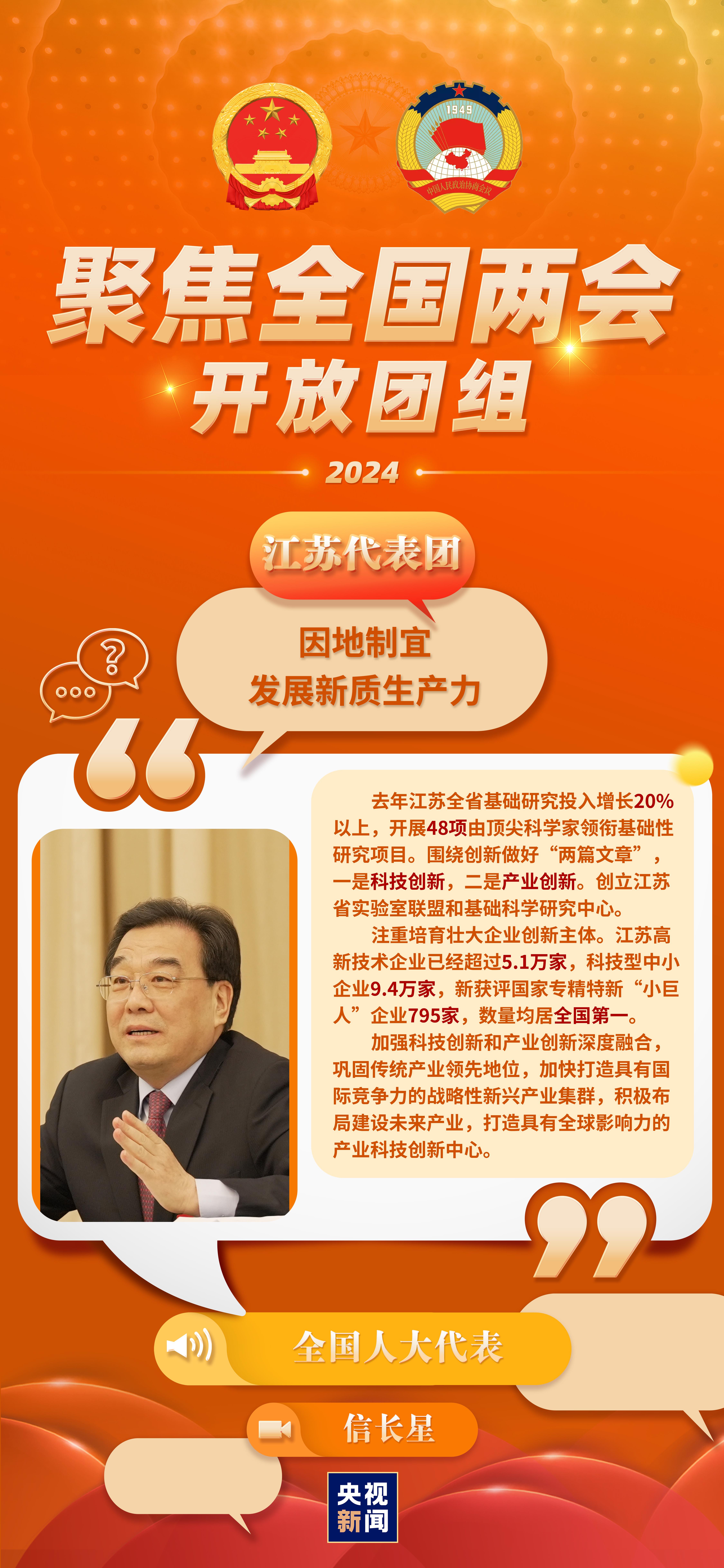 今天(3月7日)上午,出席第十四屆全國人大二次會議的江蘇代表團舉行開放團組活動。就媒體關心的發展新質生產力、推進新型工業化、農業現代化、優秀傳統文化傳承等相關問題,代表們在現場回答記者提問。