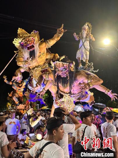 3月10日晚,巴厘島舉行盛大的“Ogoh-Ogoh”游行。隨著夜幕降臨,整個島嶼變得喧鬧起來,每個村落的男女老少都匯聚在一起,參與到這場充滿儀式感的游行中。在巴厘島市中心的一處廣場,抬“Ogoh-Ogoh”怪獸雕像的人們,伴隨著打擊樂和呼喊聲,將怪獸雕像晃動起伏,模仿怪獸行走的姿態,讓這些由竹子、紙張和膠合板制成的雕像看起來活靈活現。