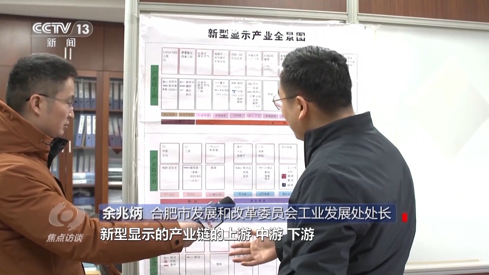 合肥市發(fā)展和改革委員會工業(yè)發(fā)展處處長 余兆炳:新型顯示產業(yè)全景圖上面顯示了合肥市發(fā)展新型顯示的產業(yè)鏈的上游、中游、下游本地的優(yōu)勢企業(yè)和龍頭企業(yè)。有這個全景圖其實是我們對標作戰(zhàn)、掛圖作戰(zhàn)、非常可視化的作戰(zhàn)。