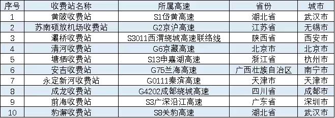清明節期間,全國高速公路預計易發生擁堵緩行的收費站,如表2所示。