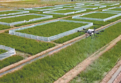 現代化農機設備在農業生產過程中的運用,極大提高了農業生產效率。圖為在印度尼西亞西爪哇省卡拉旺縣的一處水稻試驗田里,中國生產的農用無人機進行殺蟲作業。