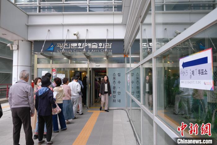 韓國第22屆國會議員選舉4月10日舉行,各政黨候選人將角逐國會300個議席。圖為選民排隊進入首爾市廣津區一處投票站。中新社記者 劉旭 攝