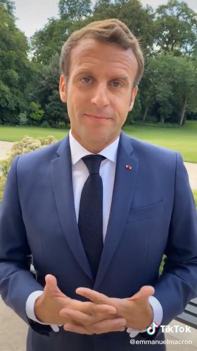 說到TikTok的“資深用戶”,不得不提法國總統(tǒng)馬克龍。他的首個TikTok視頻發(fā)布于2020年7月,之后又發(fā)布了不少回答提問的“懟臉自拍”,目前在該平臺擁有420萬粉絲。