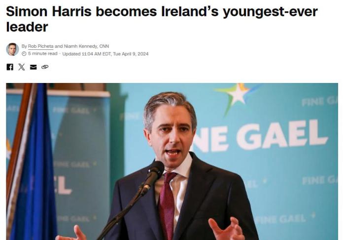 路透社稱,現年37歲的哈里斯是愛爾蘭歷史上最年輕的總理,曾任愛爾蘭衛生部長、高等教育部長等職。
