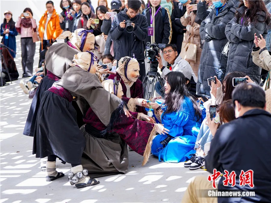 2024年3月28日,2024年世界戲劇日慶典活動中,參加戲劇工坊演出的智利劇團演員與觀眾互動。活動主辦方供圖