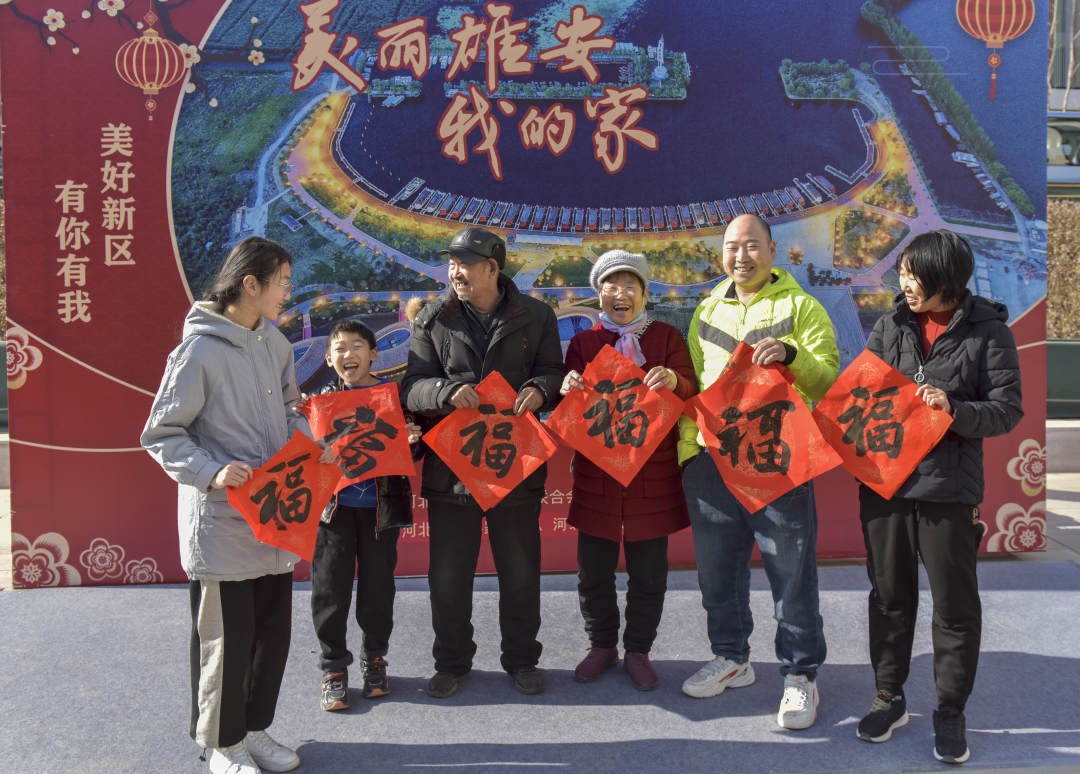 “藝術家給我們寫春聯,以前可沒有過。一幅幅春聯為我們回遷安置片區居民送福添喜。”從藝術家手里接過大紅對聯,雄安新區容東片區居民郝麗特別開心。